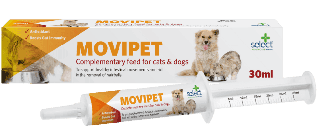 Additional gut mobility support may be required to ensure efficient transit and to prevent hair accumulation. Nutritional supplements that help lubricate the digestive tract and promote gentle mobility, such as Movipet by Select from NVS, can also be highly effective.