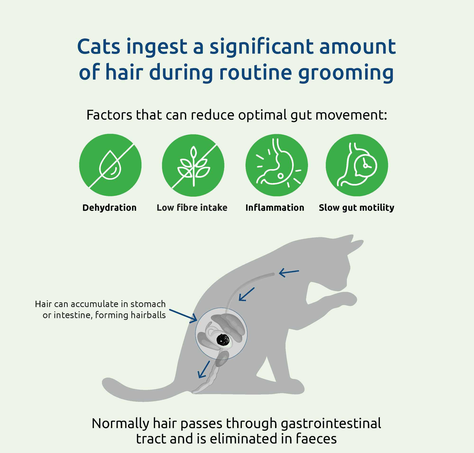 Veterinary professionals should specifically inquire about hairball elimination during routine history taking, particularly in patients presenting with gastrointestinal signs, weight loss, or recurrent vomiting. A history of frequent hairball expulsion may warrant further investigation or dietary modification, rather than solely symptomatic treatment.
