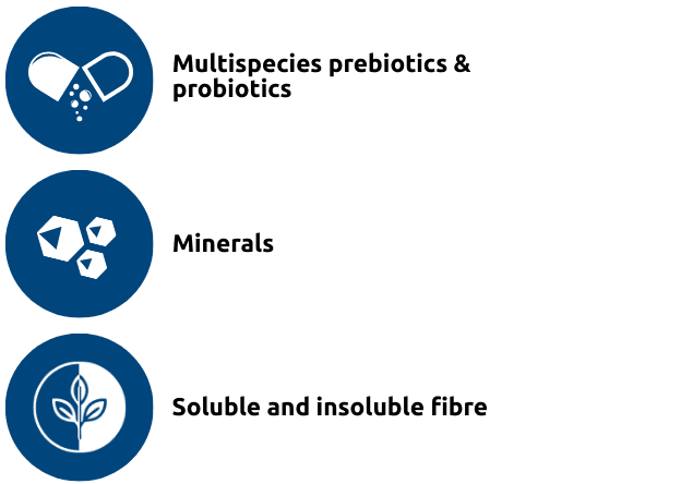 Probiotics – E. faecium and L. acidophilus to reinforce microbial balance