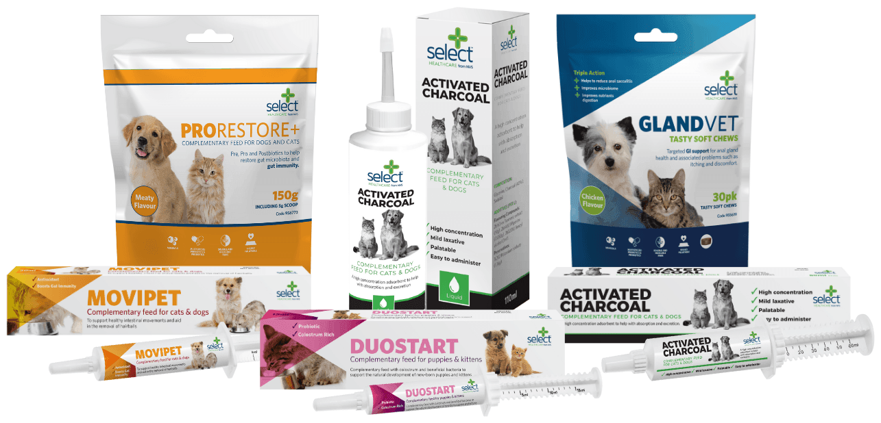 We’re delighted to introduce a new selection of products in the Select Healthcare from NVS range, all developed to support specific areas of digestive health in dogs and cats. Each product targets a distinct aspect of the digestive system - from supporting the intestinal mucosa and development of puppies and kittens to tackling hairballs, impacted glands and ingested toxins.