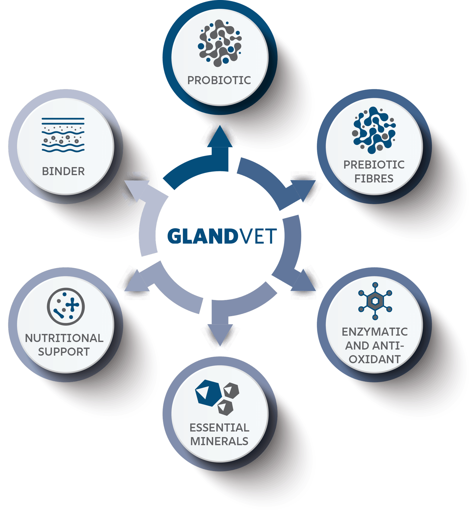 Prebiotic fibres - S. cerevisiae, Beta-glucans, MOS, psyllium and oat fibre.