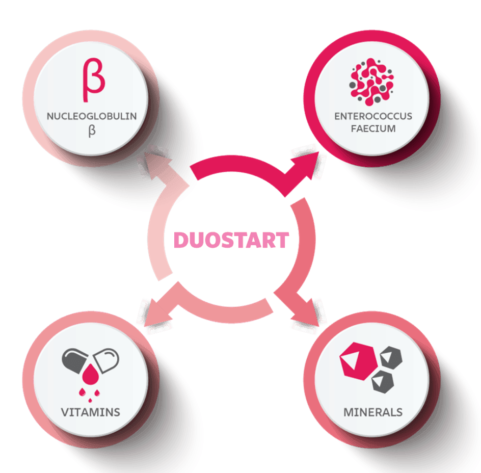 Complementary feed with colostrum and beneficial bacteria to support the natural development of new-born puppies and kittens, strengthen the immune system and promote both innate and adaptive responses.
