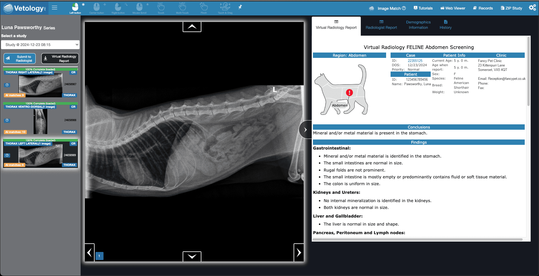 By all means, rely on your expertise in reading radiographs, but why not check your answers when you can? Asking for help is a critical skill in a successful practice. Vetology’s Virtual AI Radiology Report is just that: a support tool, an answer sheet, a guide. It’s one of many tools in your medical toolkit, and it is essential to remember that it was never intended to replace veterinary expertise nor radiologists; it was built to complement both.